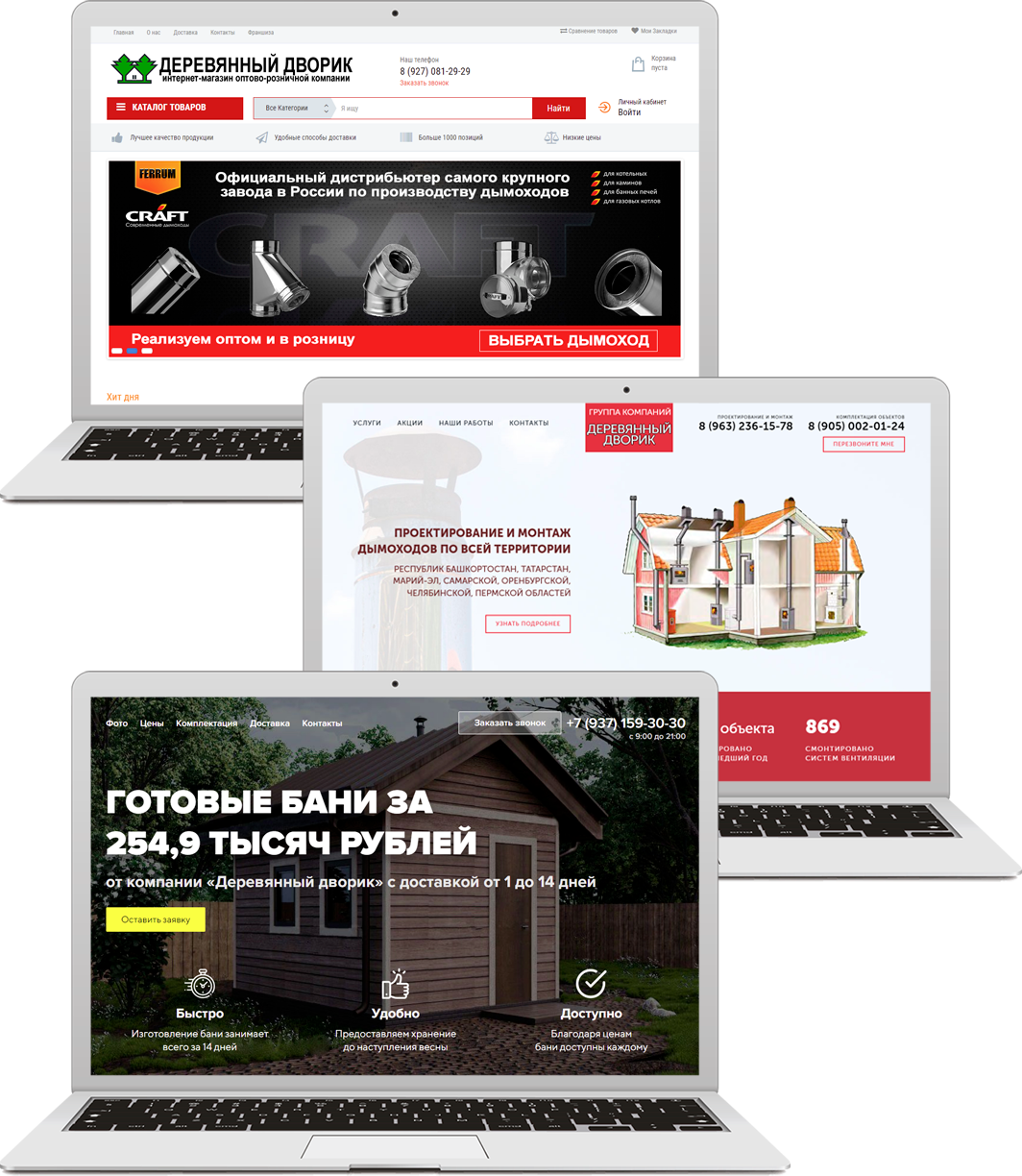 Компания занимается продажей строительных материалов из дерева, продажей и установкой дымоходов, изготовлением и продажей готовых каркасных бань и бань-бочек, строительством домов и бань. Был создан интернет-магазин, 3 одностраничных сайта, запущена контекстная реклама по продаже товаров интернет-магазина и одностраничных сайтов.