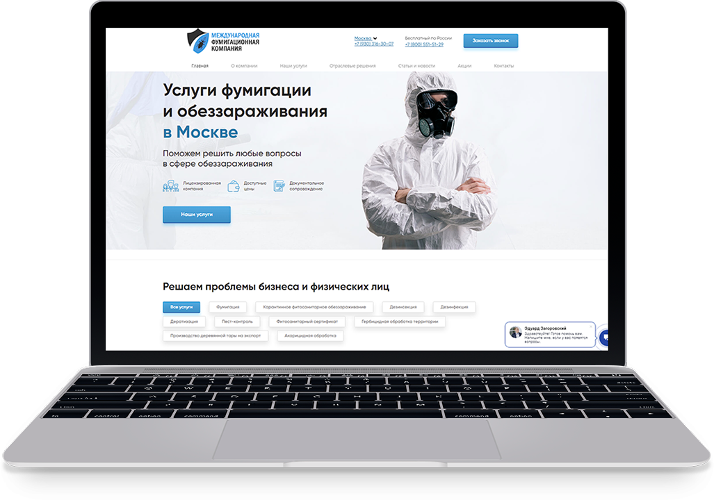 Компания занимается обеззараживанием на всей территории России. Услуги оказываются как юридическим, так и физическим лицам. Главное направление экспортное обеззараживание. Необходимо было создать поток заявок по всем направлениям.