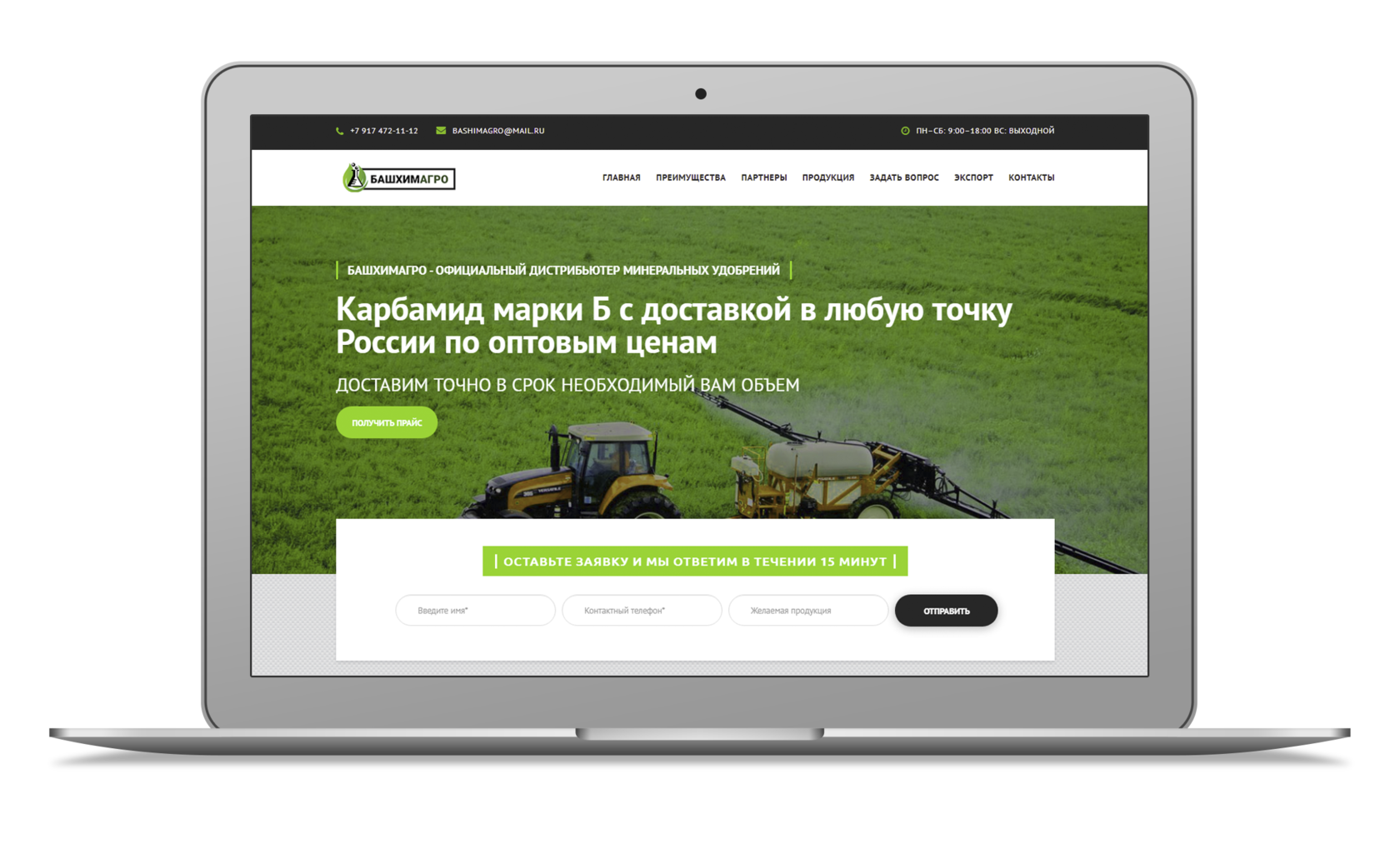 Разработка продающего сайта. Настройка, ведение и оптимизация контекстной рекламы в Поволжье, для поставщика удобрений из респ. Башкортостан.